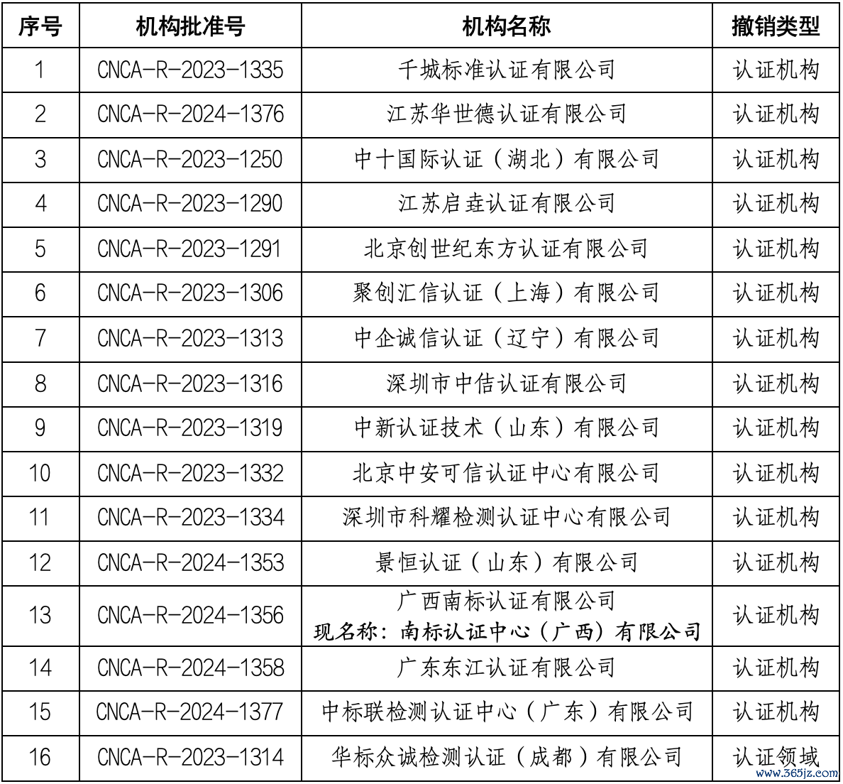 国家认监委撤销16家认证机构批准资质