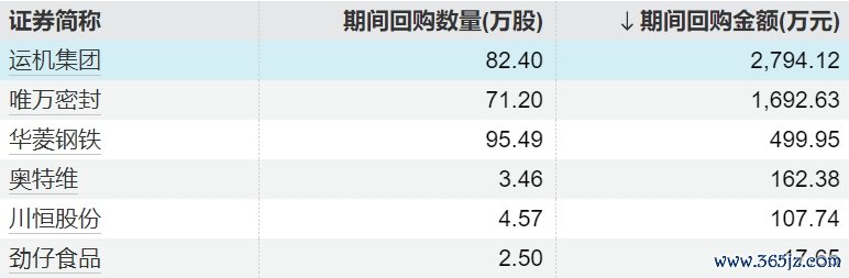 6家上市公司股票获回购,运机集团回购金额最高